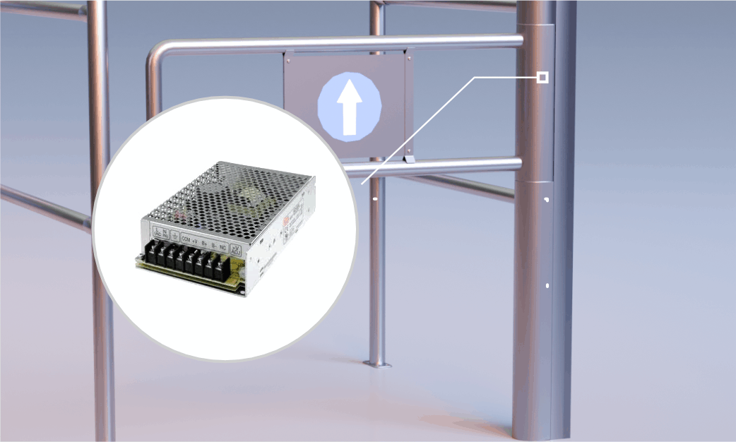 Operates in a wide voltage range: 88 - 264 VAC (47 - 63 Hz). A reliable power supply unit is included to the standard set of the turnstile and guarantees reliable and maintance-free operation of the turnstile in any country worldwide.