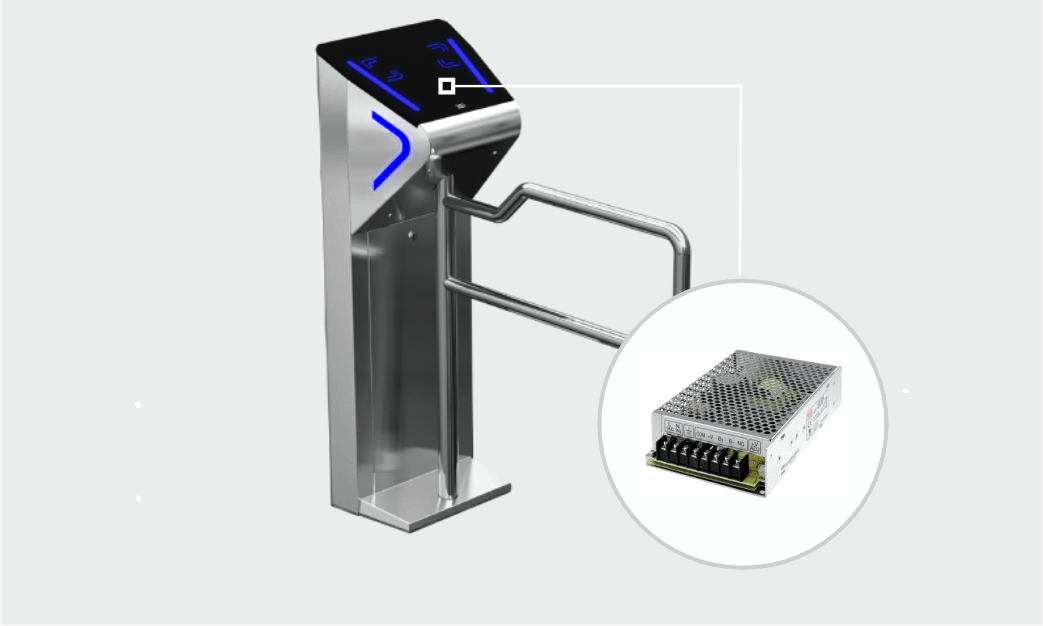 Operates in a wide voltage range: 88 - 264 VAC (47 - 63 Hz). A reliable power supply unit is included to the standard set of the turnstile and guarantees reliable and maintance-free operation of the turnstile in any country worldwide.