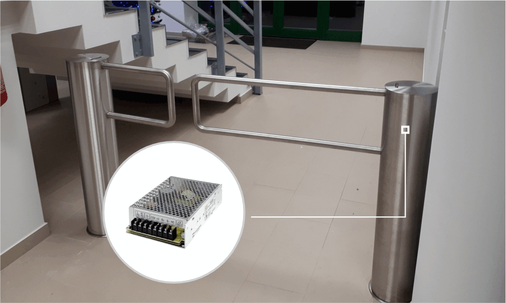 Operates in a wide voltage range: 88 - 264 VAC (47 - 63 Hz). A reliable power supply unit is included to the standard set of the turnstile and guarantees reliable and maintance-free operation of the turnstile in any country worldwide.