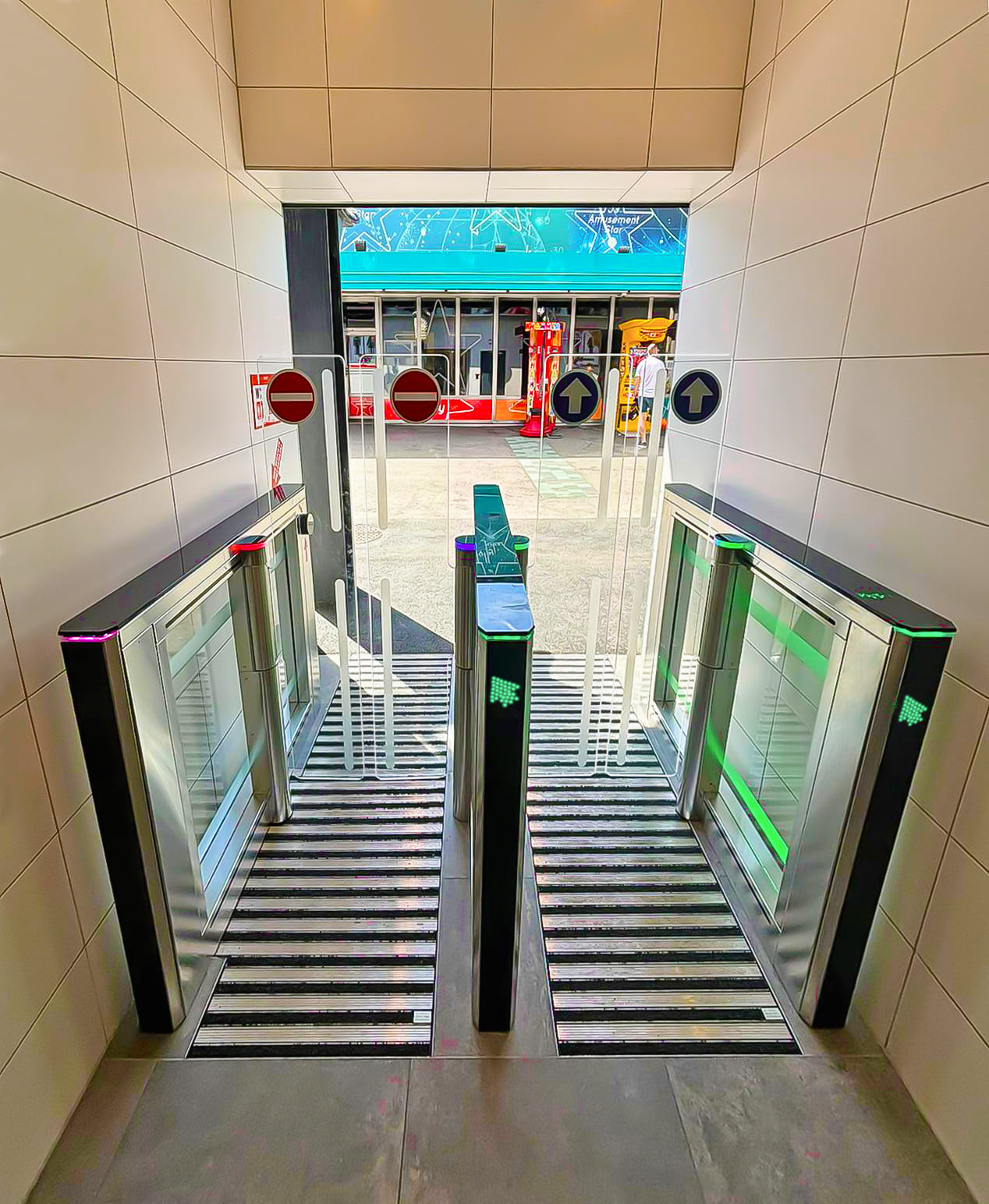 Sweeper-S-HG is most compact barrier optical turnstile. It has a slim, elegant design and minimal occupied area while offering widest opening clearance to allow big boxes, trolley, wheelchair, baby stroller or user with big luggage to pass through with comfort. The Sweeper-S-HG turnstile model with full-height swing leaves guarantees a high level of security and a long service life. High leaves not only exclude the possibility of unauthorized passage, but also prevent to transfer of anything above the turnstile, as well as over jumping it. The use of impact-resistant tempered glass guarantees safety and gives a sophisticated modern look. Well-rounded design of the turnstile posts, changeable illumination and expressive indication makes this turnstile usage safe and comfortable for passengers.