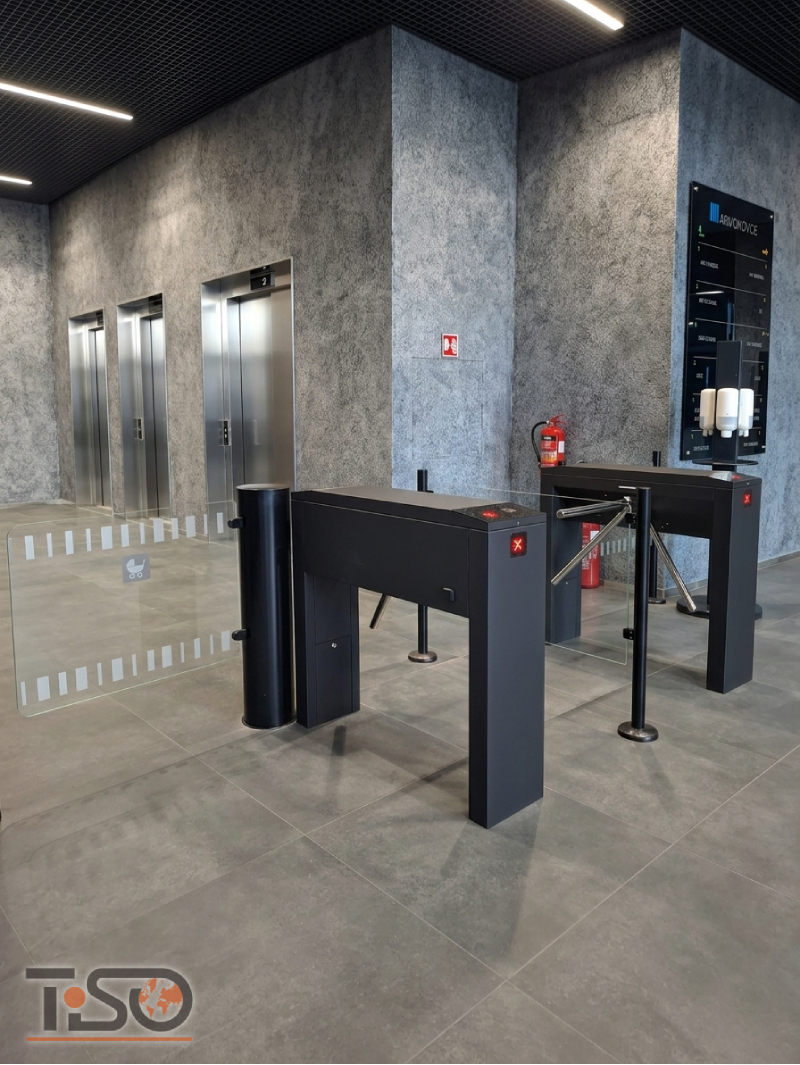 Gate-GS gates offer single or dual direction control of pedestrian access. The primary purpose of the servo-type swing gate turnstile is a control of pedestrian access for industrial premises, administrative establishments, banks, offices, shops, stations and other sites. Due to its unique shape and variety of models, it can suit any interior. That turnstile range is easy to use, compact in size and feature a blade of glass in the swing gate. When receiving a command to permit passage the drive bar turns 90°, and after passage returns to its original position.